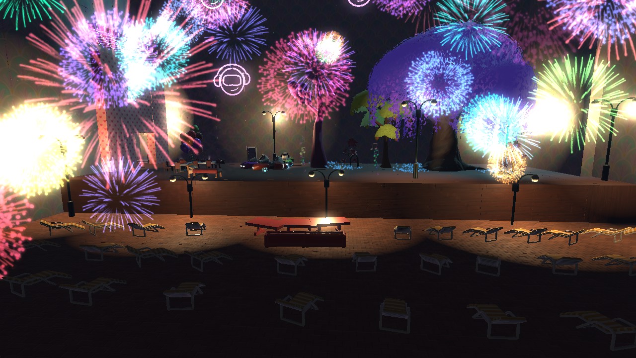 In this game, you can watch people share their stories and special Talents they got. The table and chairs are the judges, the beach chairs are the audience and the front are the performers. You can even share your real life stories! Share whatever you want in this game!
