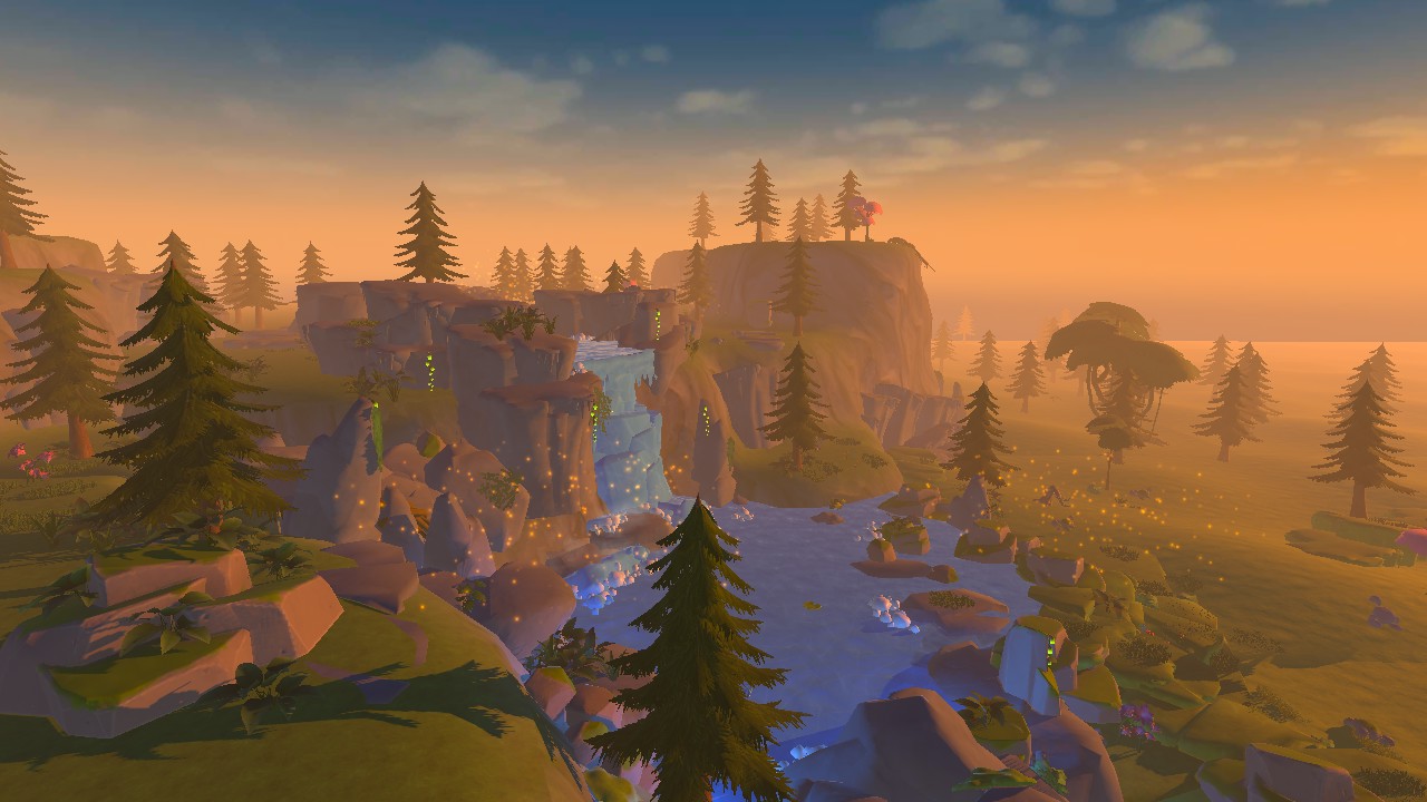 This world has a nice comfy treehouse and endless grassy plains with a golden sunset reflecting upon its land, with beautiful cliffs and a grand waterfall lake set at the back. Purely focused on nature and peace. It’s also a perfect place for chilling with your friends!